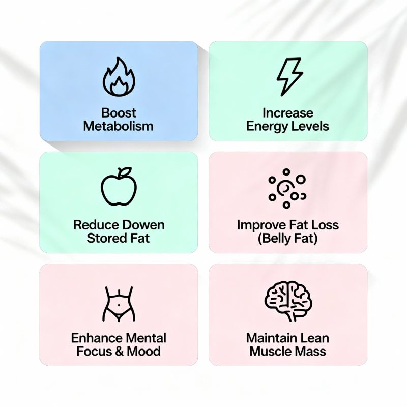 - Reduces stubborn belly fat around stomach, thighs, and waist